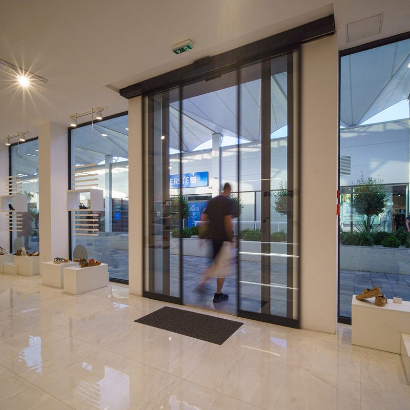 Standardna vrata 300 idealna su za dinamično okruženje, što smo ponovno potvrdili u opisanom projektu. Zadar godišnje primi i do deset puta više turista od svojih stalnih stanovnika, a novi trgovački centar ubrzo je postao popularno sastajalište turista. Automatska klizna vrata omogućuju dobar protok ljudi čak i u slučajevima velike posjećenosti.