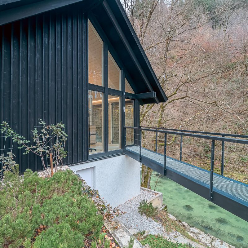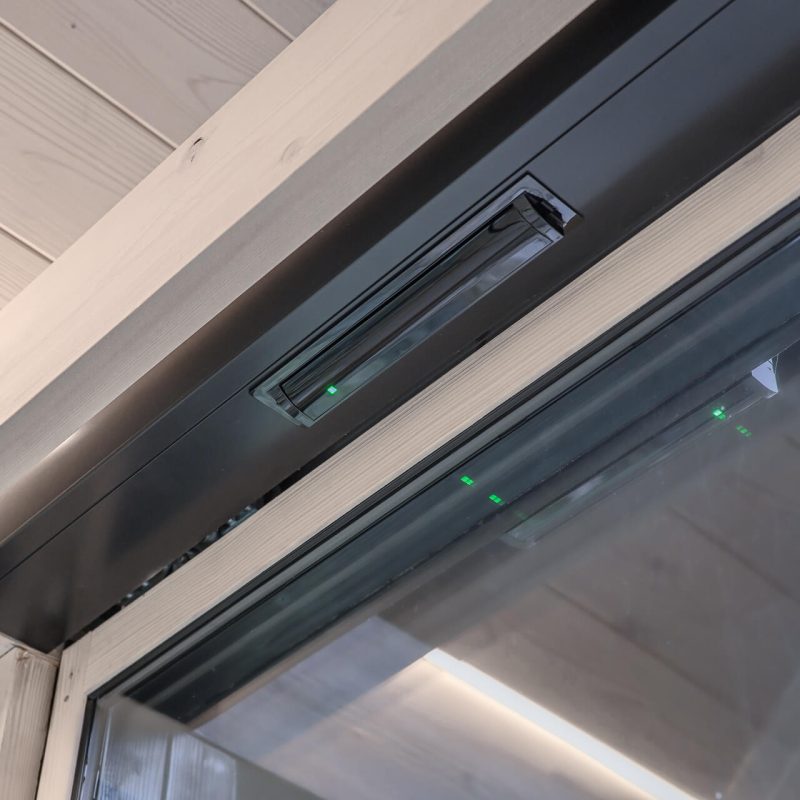 Vanjski profili vrata obojeni su u RAL nijansu koja se podudara s drvenim fasadnim oblogama, čime se postiže vizualna nenametljivost i sklad s okolišem.