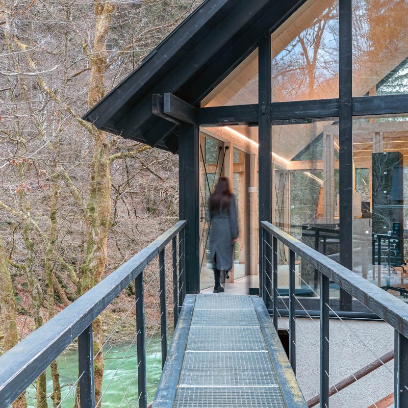 Novo ulazno središte u kanjonu Vintgar dočekuje posjetitelje na jednoj od najposjećenijih prirodnih znamenitosti na svijetu. Zgradu potpisuje arhitektonski ured OFIS Arhitekti, a inspirirana je tradicionalnim drvenim kolibama, interpretiranima kroz suvremeni arhitektonski izraz.