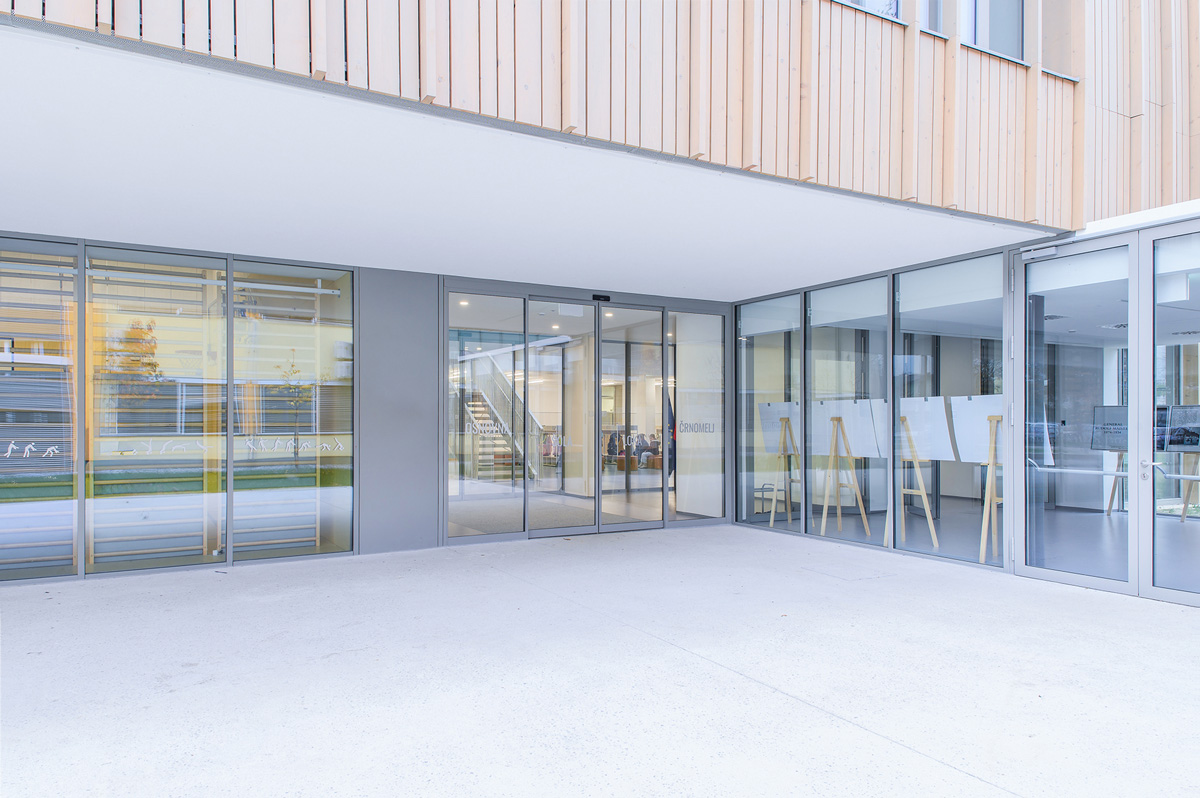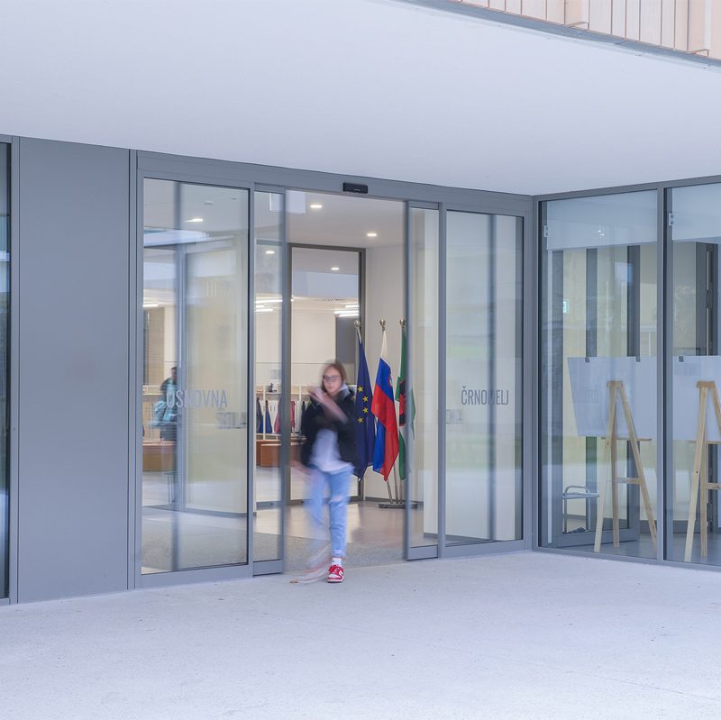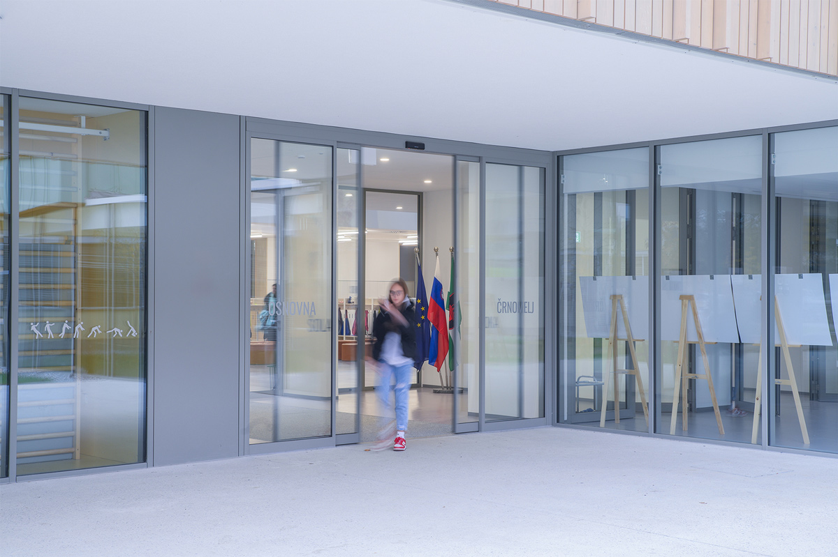 Nova, promišljeno projektirana osnovna škola u Črnomlju spaja suvremenu arhitekturu i energetsku učinkovitost. Tome značajno doprinose i automatska klizna vrata Doorson 300 na glavnom ulazu u školu.
