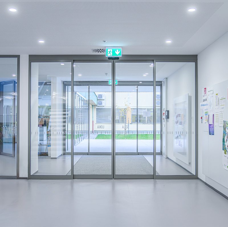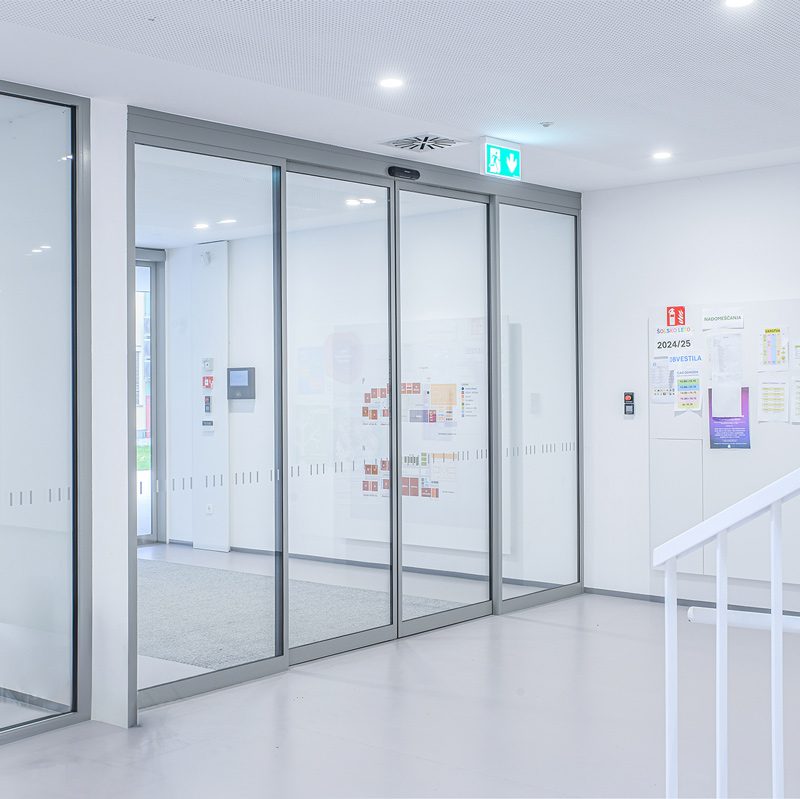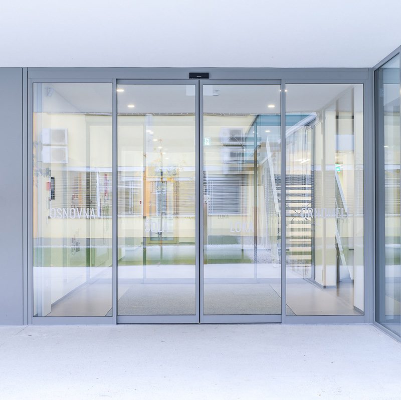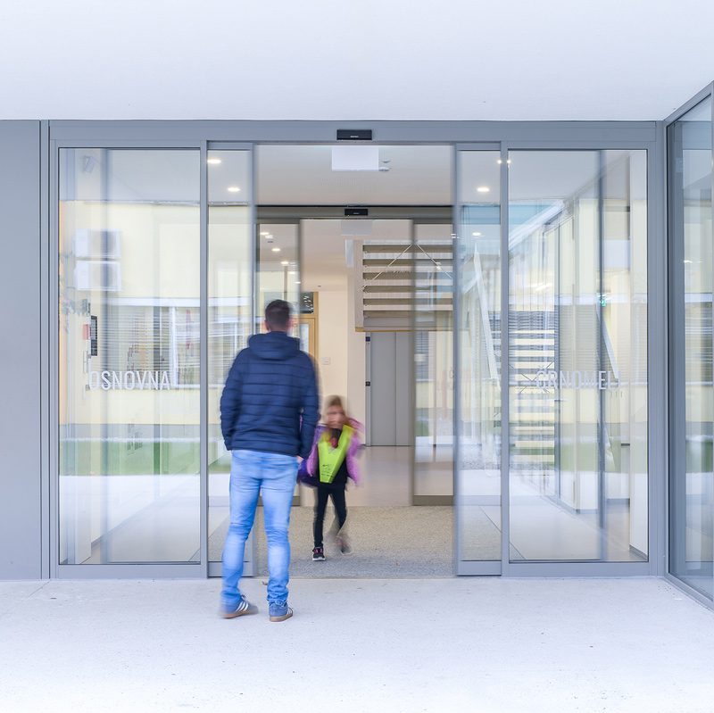 Glavni ulaz škole opremljen je dvostrukim standardnim automatskim kliznim vratima 300 koja omogućuju siguran, brz i beskontaktni prolaz za sve korisnike.